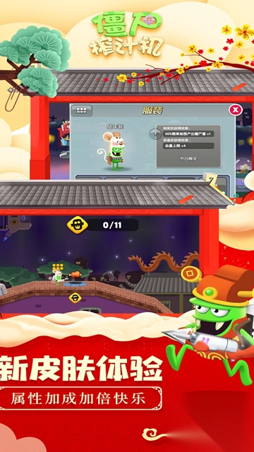 这款游戏的人物设定极具美漫特色,仅用简单线条就能勾勒出丰富的表情。特别是那些可爱的僵尸,模样格外呆萌。而主角是个绿皮外星人,脸上挂着一副奸诈的表情,简直就像把“坏人”二字直接写在了脑门上。