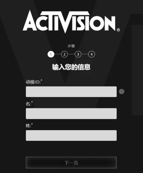 输入个人信息,其中动视昵称会显示在《使命召唤》游戏中。