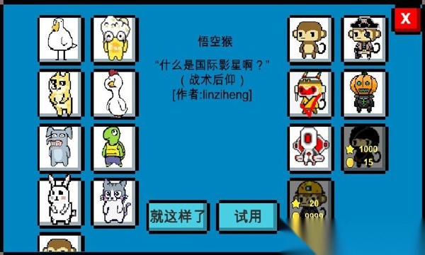 4、游戏中,除了关卡地图,还有众多拥有不同技能的角色,并且配备了皮肤。值得一提的是,这些皮肤均由玩家亲手制作。