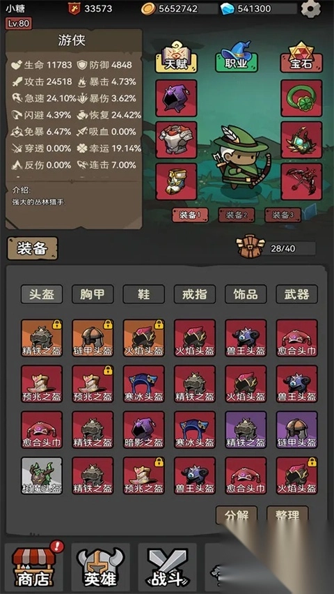 3、击败怪物后会掉落各种装备,点击英雄界面即可穿戴这些装备。