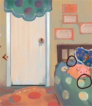 1. 我们回到本章起始的界面,点击枕头以及小猪鼻子,从而获取两块铜牌(不确定是不是铜牌)。