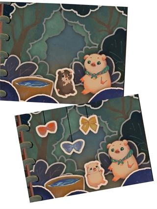 6、接着,我们在第三个界面的小猪蹄拼图处使用手链,完成拼图后,便开始阅读《三只小猪》(此处未放相关图片,因为当时没截取到)