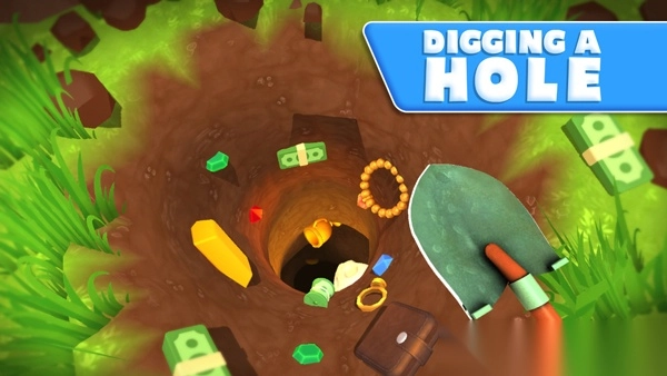 掘地求财手机版,这是一款相当出色的3D休闲挖掘类游戏,其英文名称为Digging A Hole 3D 。在游戏里,玩家会化身为一名挖掘者,需要持续在院子的土地中进行挖掘,把隐匿其中的全部宝藏都找出来,最终摇身一变成为大富翁。