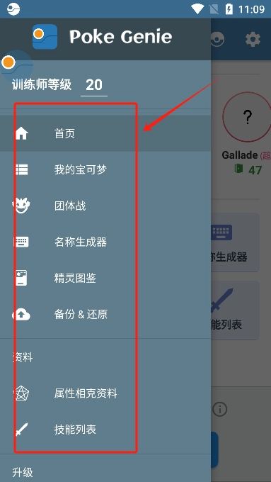 4、软件的所有的功能列表都在这里,包括团体站、属性相克资料都可以在这里找到