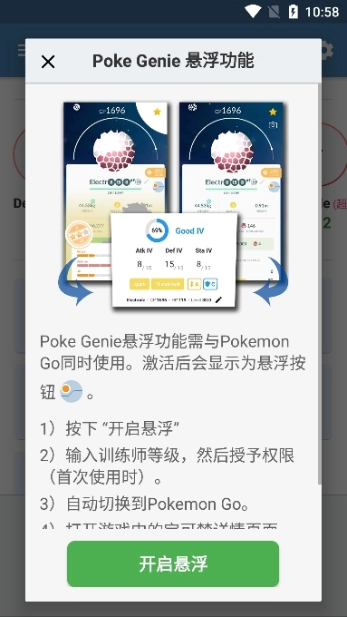 Pokegenie中文版是一款专为Pokemon Go玩家量身定制的游戏辅助工具。它具备精灵图鉴、名称生成器、战斗模拟器以及技能列表等丰富功能。玩家只需开启悬浮窗功能,导入自己的宝可梦,即可实时查看宝可梦的详细数值。