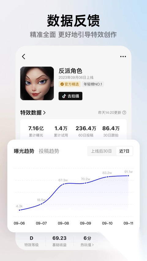 像塑iOS版,这是一款专门为苹果手机用户量身定制的抖音特效设计软件。它配备了一系列专业工具,操作十分简便,极易上手,借助它,你能在手机上轻松创作出美妆滤镜、趣味游戏、互动AR等超酷炫的潮流特效。不仅如此,像塑还推出了抖音特效投稿激励机制,用户能够把作品在线发布至抖音,和众多用户分享自己的创意。一旦你的特效视频使用量达到一定程度,就有机会获取相应的现金收益,同时还能享有特效师身份所带来的流量支持。感兴趣的小伙伴们,赶紧来下载体验一番吧~