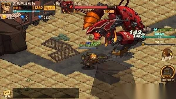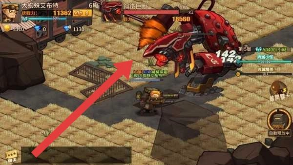 3、战斗时,操控角色,瞄准箭头指向的“鋼鐵巨蟲”BOSS,释放技能,配合队友,击败强敌。