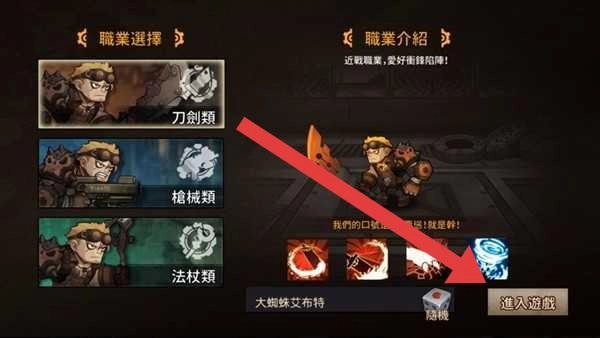 1、在职业选择页,选定“刀劍類”“槍械類”或“法杖類”职业,点击【進入游戲】,开启冒险。