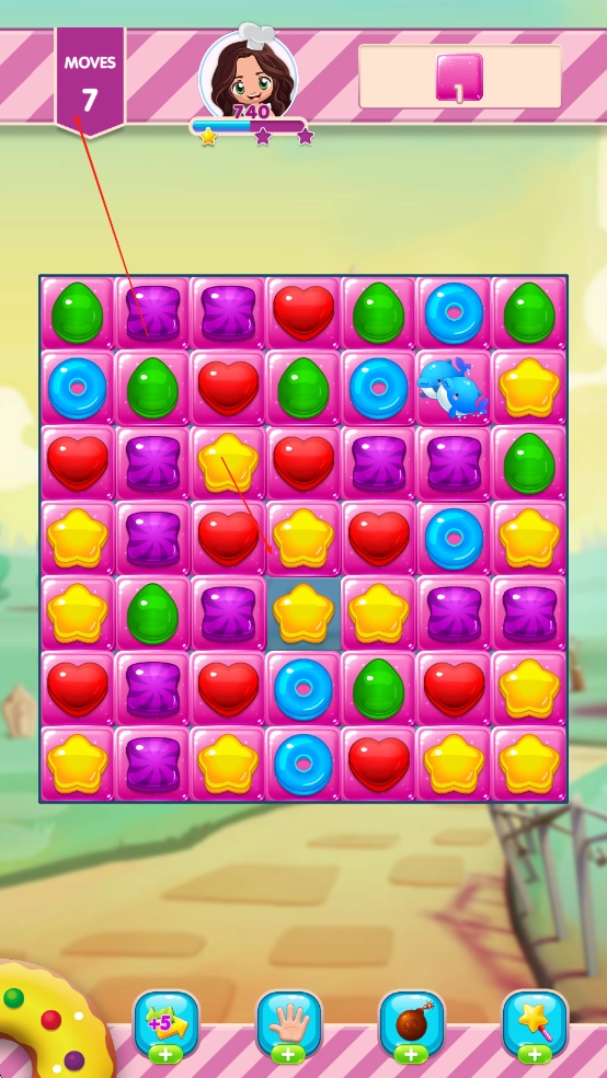 2、道具合成技巧:借助消除特定形状(像T型、L型)来生成高级道具,有策略地留存道具,并在关键步数加以运用,以此提高通关效率。