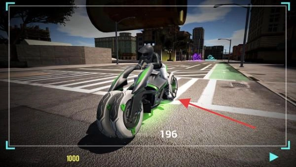 1、选橙色/未来摩托,在城市道路/特技赛道行驶,用方向键控转向,油门加速。
