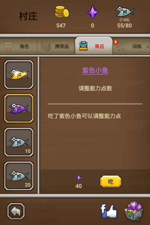 5、要是对能力点的加点情况不太满意,那么可以在商店里购买紫色小鱼,以此来重新调整能力点,这也就是大家通常所说的洗点。