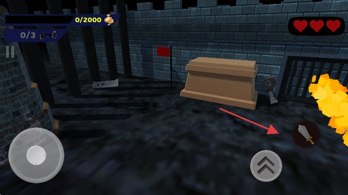 3、靠近武器、钥匙,点击右侧武器图标切换装备,收集物品。