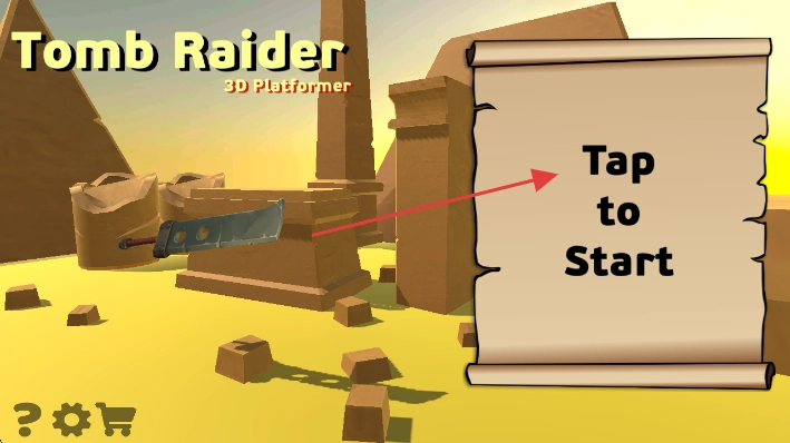 1. 在【古墓丽影 3D 平台游戏(Tomb Raider 3D Platformer)】的主界面上,点击写有【点击开始(Tap to Start)】的卷轴,即可进入地宫场景。