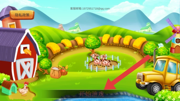 1、包含农场场景(有谷仓、奶牛、鸡、拖拉机、风车等),玩家点击【开始游戏】进入农场经营环节。