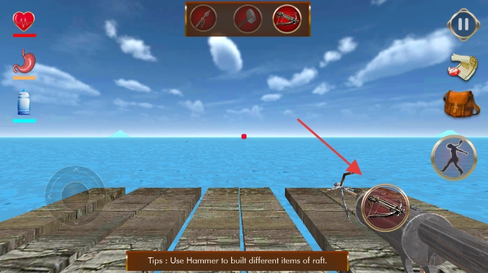 3、点击右侧弩箭图标,切换远程武器,用于狩猎或抵御危险。