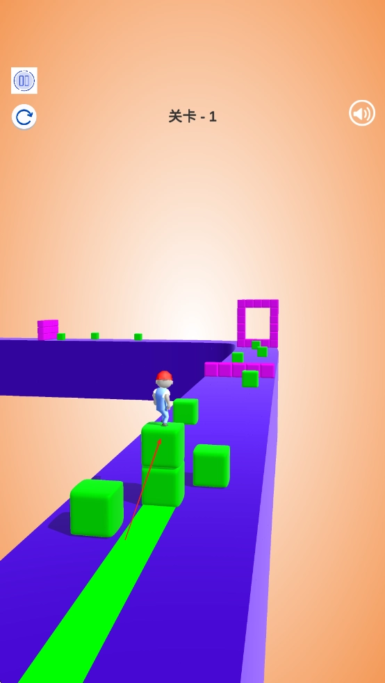 1. 踏入赛道后,控制角色左右移动以收集沿途的方块,通过滑动屏幕实现加速奔跑,当靠近障碍物时,点击屏幕利用方块搭建出可供通行的路径。