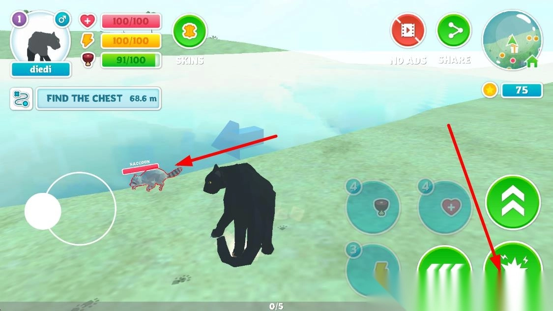 2、在探索过程中收集线索与装备,利用智慧躲避天敌,完成任务提升黑豹生存能力与属性。