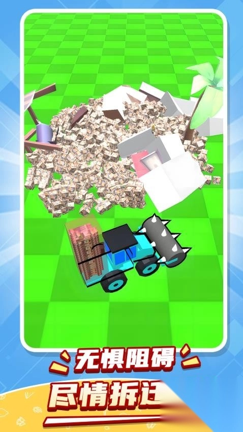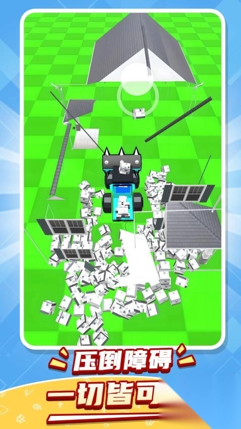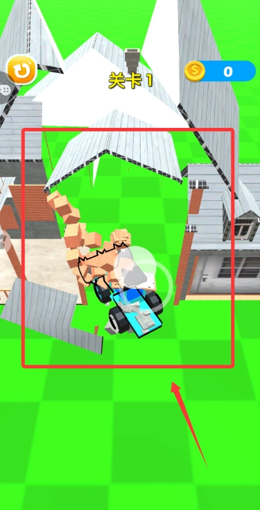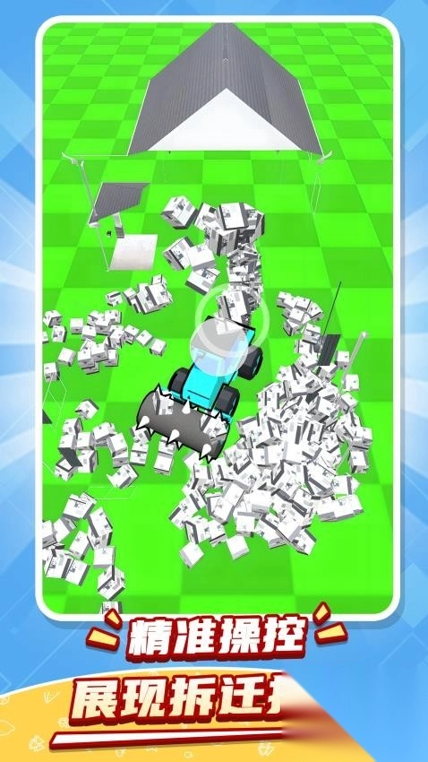 2、进入场景后,驾驭铲车将房屋逐一推倒,尽情沉浸于肆意破坏的畅快之中。