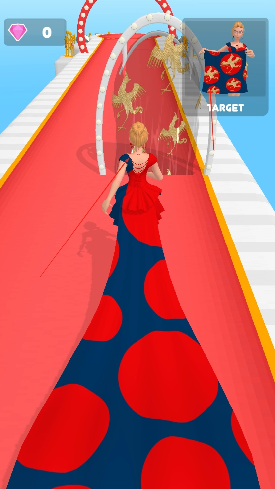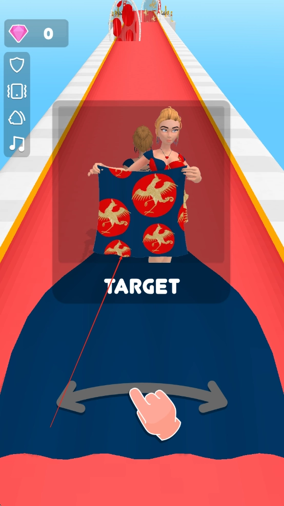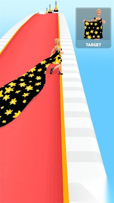 1. 进入游戏之后,通过滑动屏幕来操控角色向左或向右移动,在赛道上拾取四处散落的布料、纽扣、羽毛等装饰素材,长按屏幕便能加速奔跑。