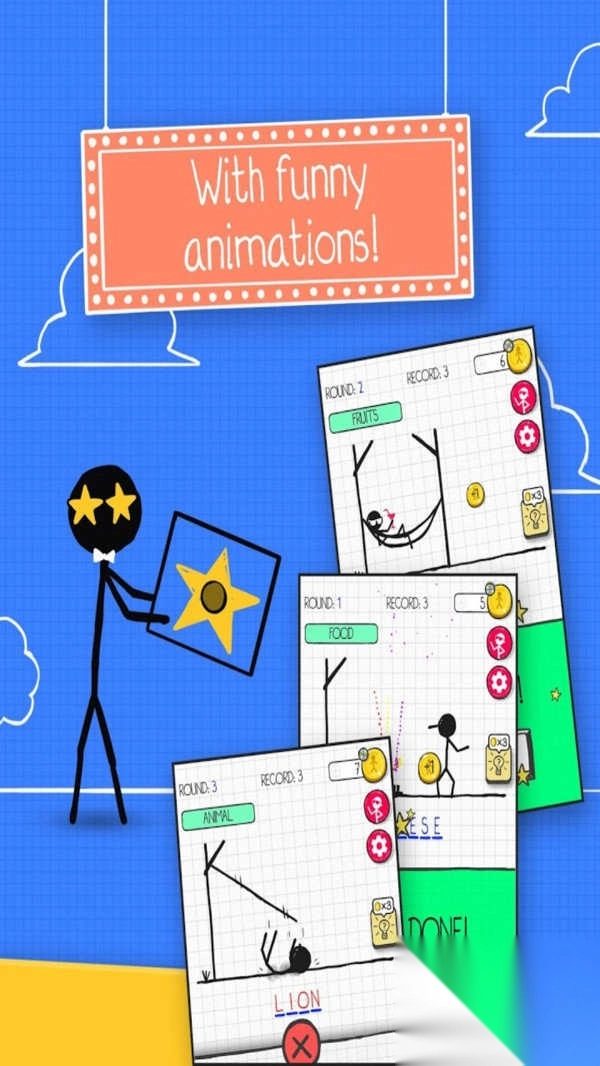 2、在启动界面,点击【PLAY】,开启“ROUND:5”等回合,按照类别(例如SPORTS)猜测隐藏单词。