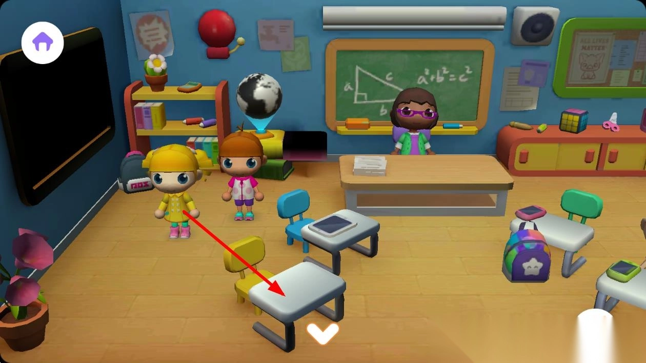 2、于课堂场景里,点击黑板即可参与答题,进而完成语文、数学等课程的学习。课间时分,前往操场与同学们一同玩跳绳、踢足球等互动游戏。