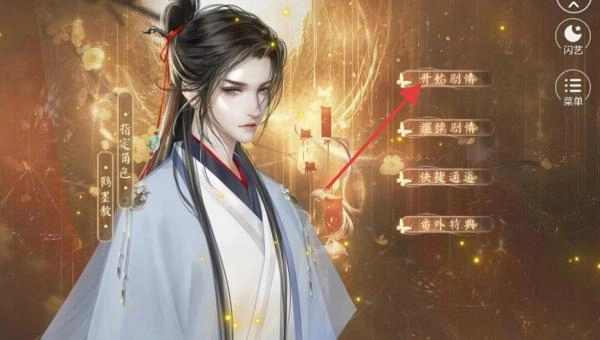 1、在初始界面选“开始剧情”,进入古风世界,按提示点击画面(如人物、场景物件)推进。