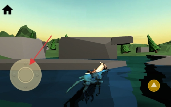 2、用左侧圆盘摇杆,控制马匹移动方向,跨越水域等地形。