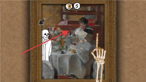 3、沿箭头找画面细节(桌上物品、人物动作),点击互动,完成隐藏元素收集,解锁新场景。