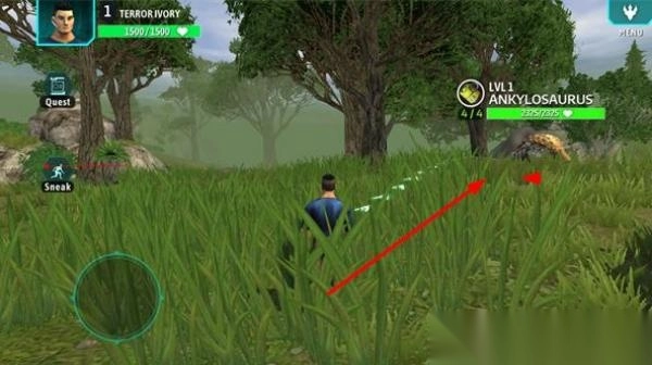 1、初入游戏,操控角色在多样地形中寻觅恐龙踪迹,发现目标后,借助潜行机制,依靠树木、草丛隐蔽靠近,避免惊动生性敏感的恐龙。