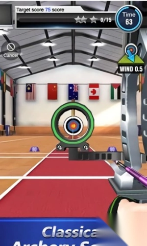 1、核心玩法围绕精准射击展开,通过滑动屏幕控制拉弓力度和角度。完美命中靶心可获得额外奖励分数。