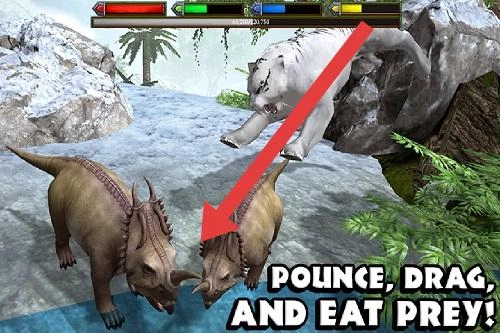 2、操控恐龙行动,若为食肉恐龙,按指引追捕猎物(如三角龙),利用地形埋伏、突袭,精准发起攻击进食。