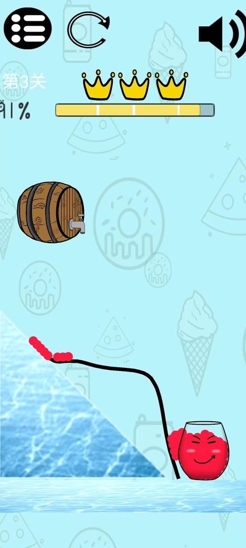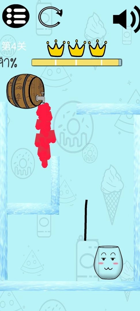 1、基础操作机制,在屏幕上绘制挡板、管道等结构,引导红酒准确流入目标容器。线条可随时擦除重画。