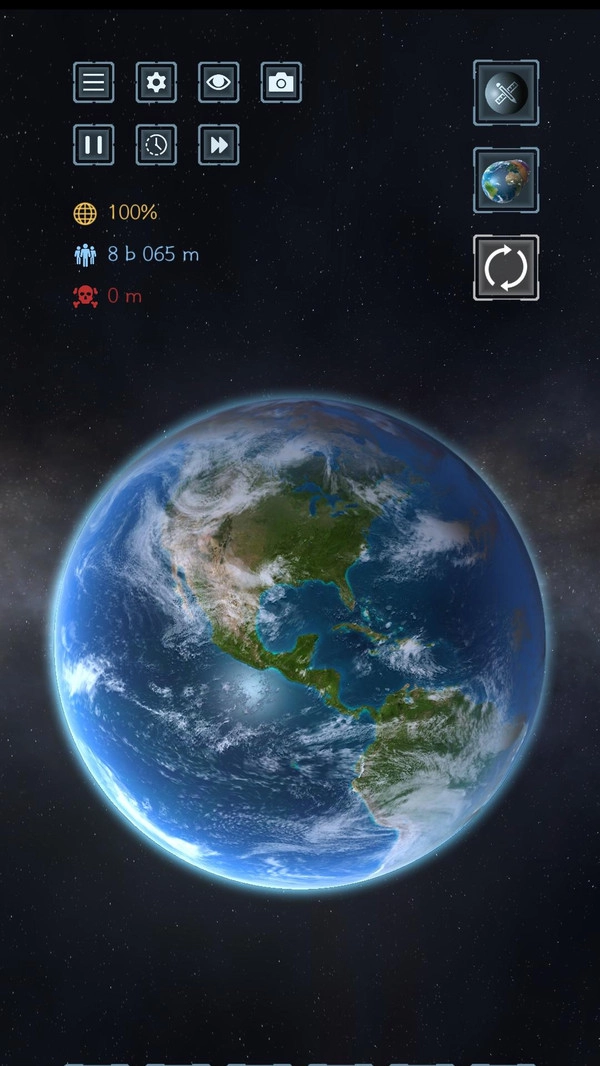 2. 右侧区域包含地图与重置功能:点击地球图标能够切换星球,箭头的作用是重启当前局面。