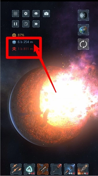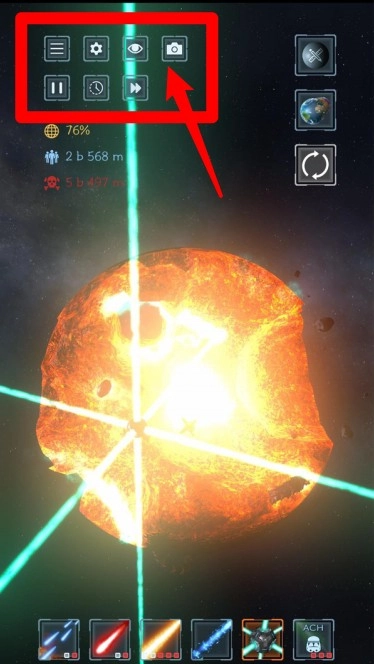 1.点击武器发动攻击:点选攻击图标瞄准星球,瞬间释放火力。