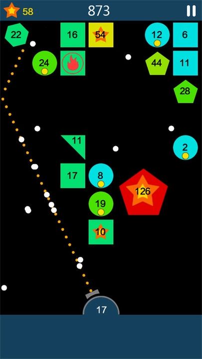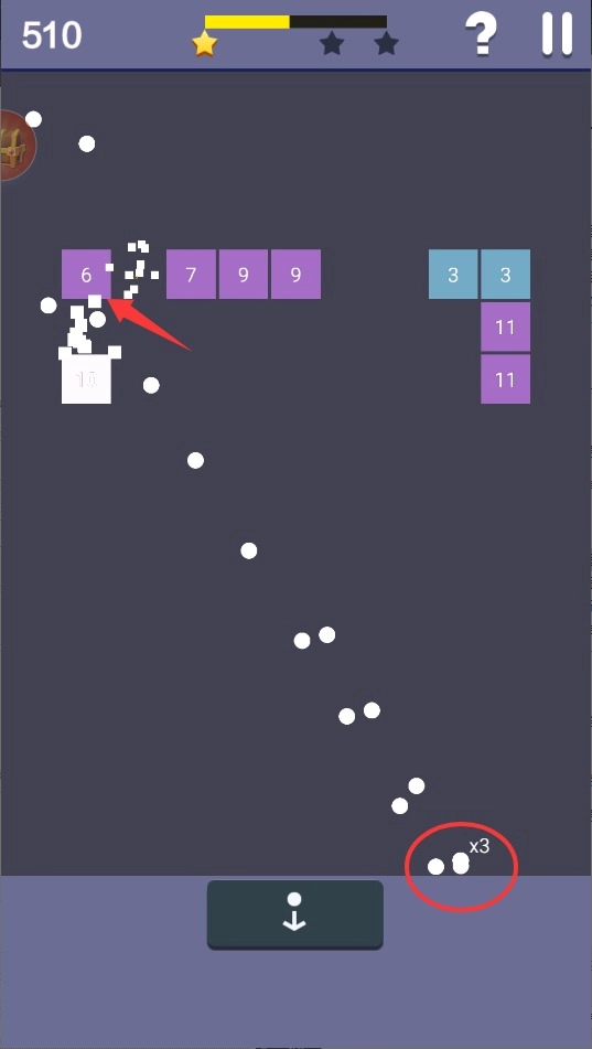 1、基础规则,通过移动底部的挡板反弹弹珠,消除屏幕上方的所有砖块即可通关。操作简单但极具挑战性。