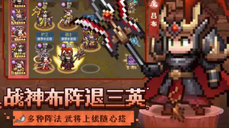 3、像素风格打造:该游戏以像素风格精心打造,呈现出丰富多样的场景,以及鲜明且独具特色的武将造型,给予玩家视觉上的愉悦体验。而且武将外观能够持续变化,进一步增添了游戏的趣味性与个性化程度。