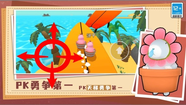 2.点击右侧箭头按钮可进行跳跃操作,长按可滑行闪避障碍,熟练节奏掌控是赢下比赛的关键。