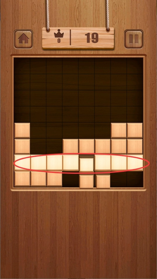 2、通过手指左右滑动调整底部方块的位置,将其移动到上方拼图区域,注意预留空间为后续方块做准备。
