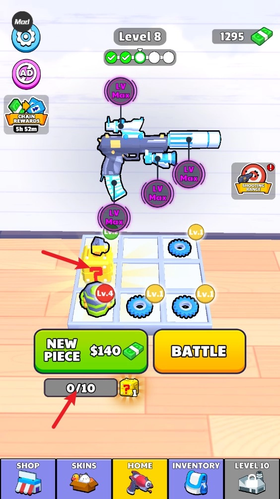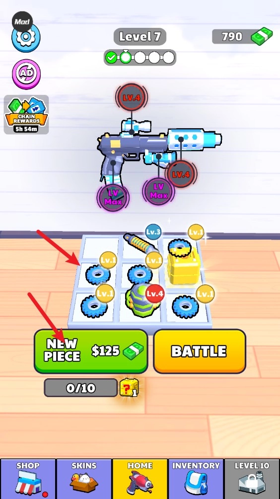 6、返回主界面后,你能够使用货币来购置各类零件,而且相同的零件还能够进行合成以实现升级。