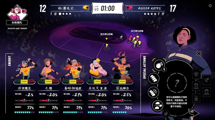 在《轮滑娇娃》中,你将化身为教练琼,与安妮、波希娅、莉莉、科迪莉亚以及朱丽叶这五位出色的队员共同生活、训练。你们携手组建起一支顶尖的轮滑阻拦团队,脚踩四轮轮滑鞋,勇敢地进行截挡,一路披荆斩棘!身为团队的领导者,你不仅要关心队员们的个人生活,还得管理她们的赛事相关事宜。每一位队员都可能会遭遇人际交往和感情方面的困扰,这就需要你充分顾及她们的情绪。全接触运动需实时指挥!队内每天都有各种故事发生,而你同时也要在现场把控队员们在赛场上的表现。制定战术,下达指令,借助街机风格的键位来指挥比赛。
