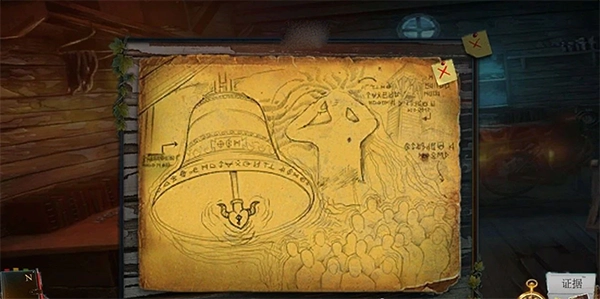 再点击左墙,移开前面的纸,拿到【一座鸣响的钟照片】。