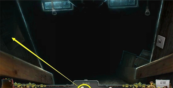 回到【住宿的房子】,进入【楼下】场景,用【手电】照亮左边的电闸,点击红色按钮打开灯泡。