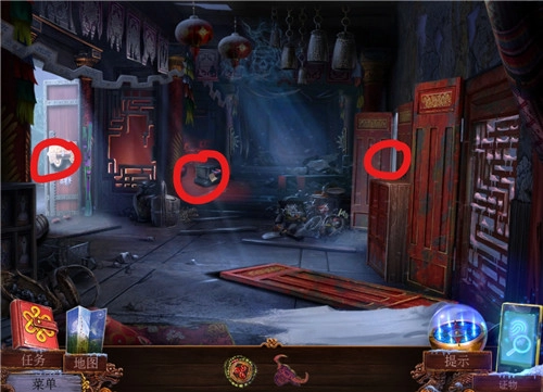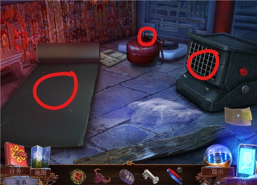 踏入【教堂内】场景,点击位于中间位置的杂物,随即开启寻物小游戏:依据以下文字寻找与之对应的物品;完成该寻物小游戏后即可获取【手电】。