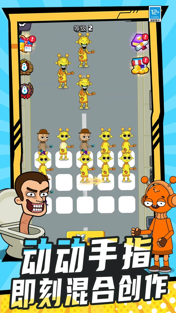 1.角色升级:游戏通过合成升级角色,打造专属强化战士,提升挑战力更有趣,每次融合进阶都让角色更独特且战力爆表。