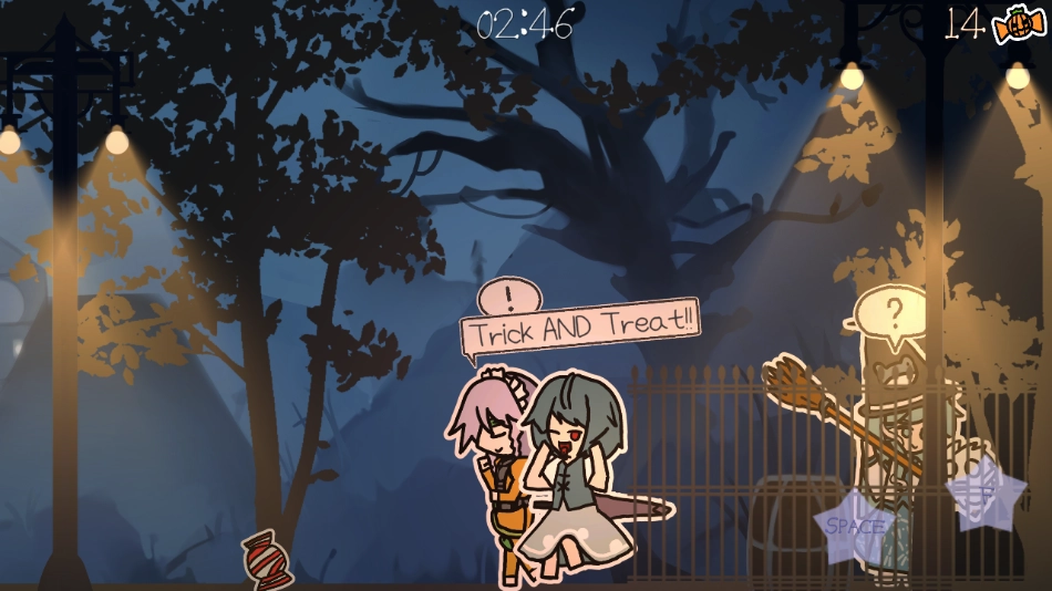 《多多良小伞的惊吓大作战》是一款基于多多良小伞背景创作的同人游戏。游戏采用动画风格,色彩鲜艳明亮,为玩家带来极佳的游戏体验。在游戏里,玩家要通过吓唬角色获取糖果。赶紧下载,叫上朋友,比比看在规定时间内谁吓唬的人更多!
