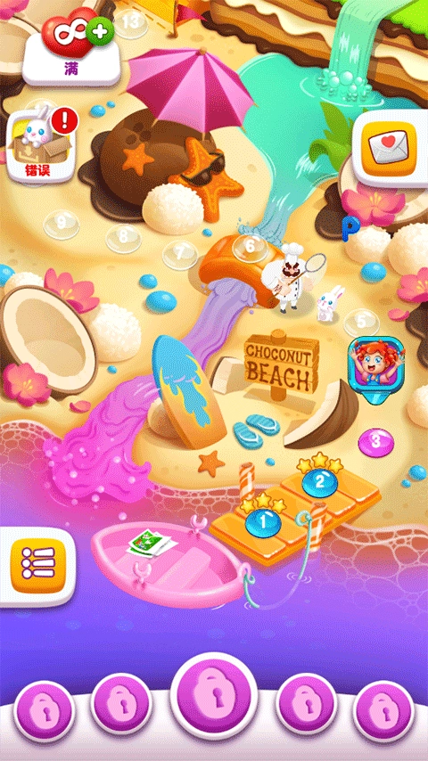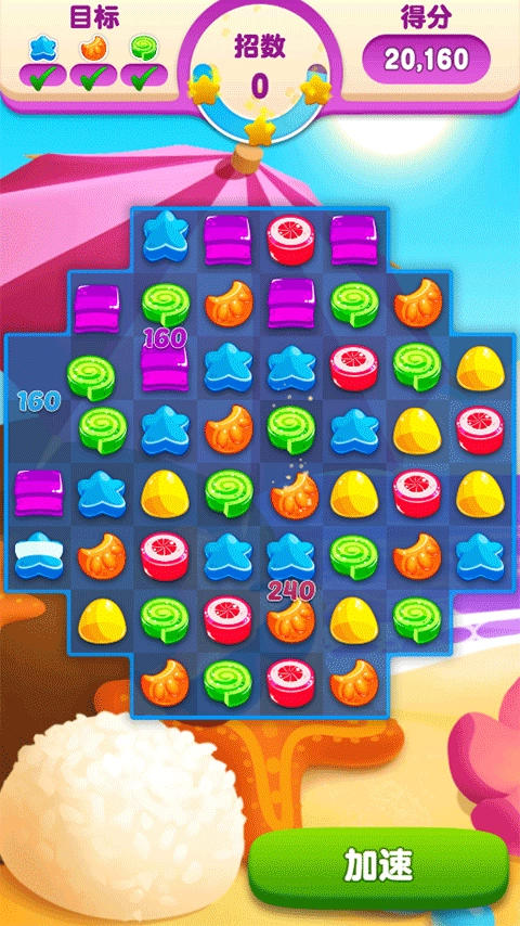 2、要顺利解锁下一个关卡,需依据每一关的要求,收集规定数量的糖果。