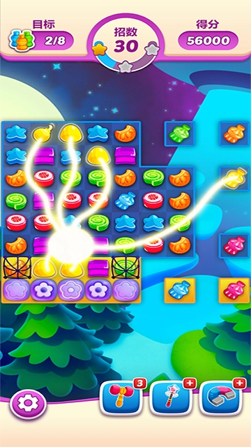 3、不同数量与组合的糖果,会触发别具一格的道具效果,为你的挑战提供助力。