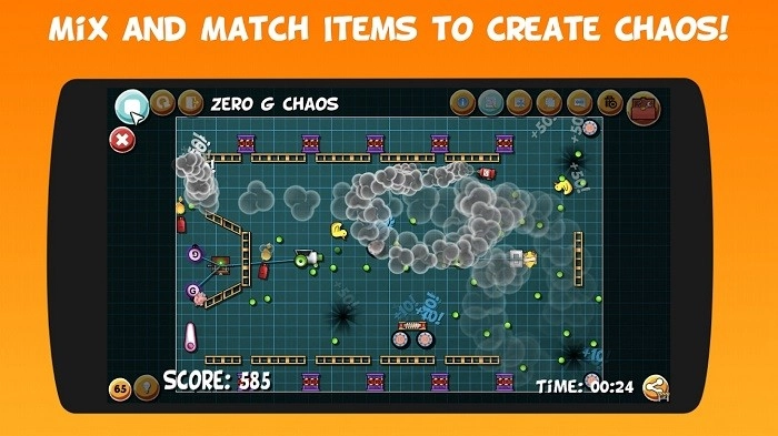 2、于沙盒模式里尽情尝试各类奇思妙想,像借助橡皮鸭发射火箭,亦或是设计地雷来引导路径这般充满创意的玩法。