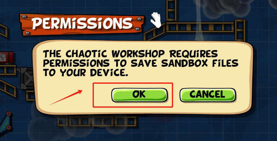 1、点绿色OK按钮授予游戏保存文件权限,或点CANCEL拒绝授权。