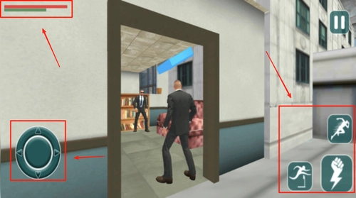 2. 界面左侧为控制移动的按钮,右侧具备射击与切换武器的功能,而在界面下方,则展示着当前任务进度以及装备状态。